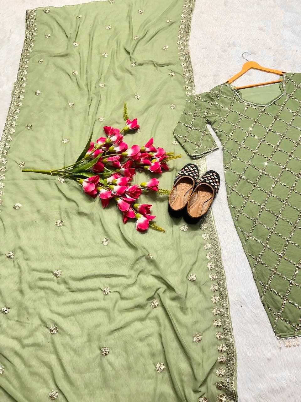 MF 409 New Fancy Embroidered Light Green Dress