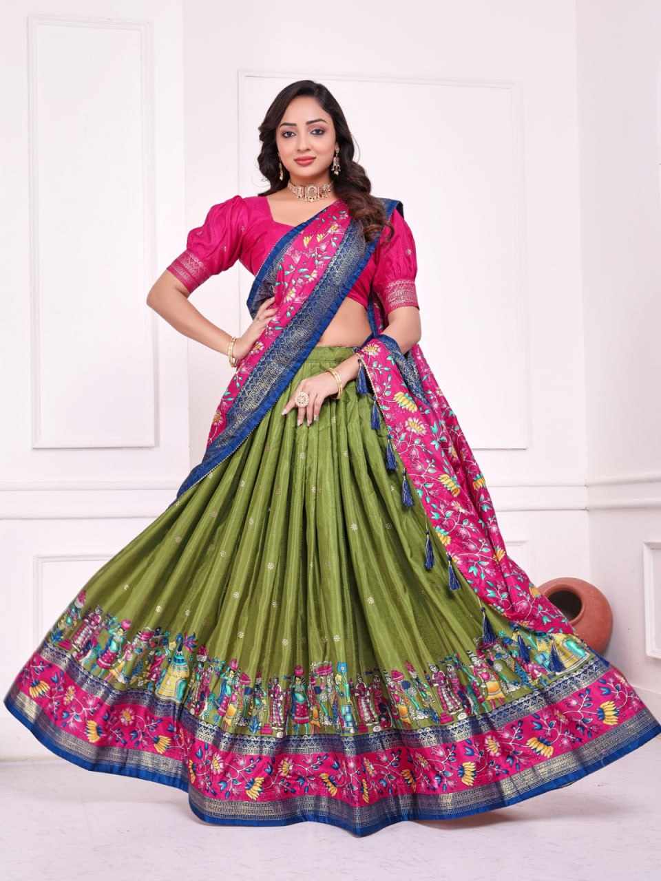 Reviews for PIYU 10-2 Silk Chaniya Choli With Viving Foil Mehndi Colour Lehnga