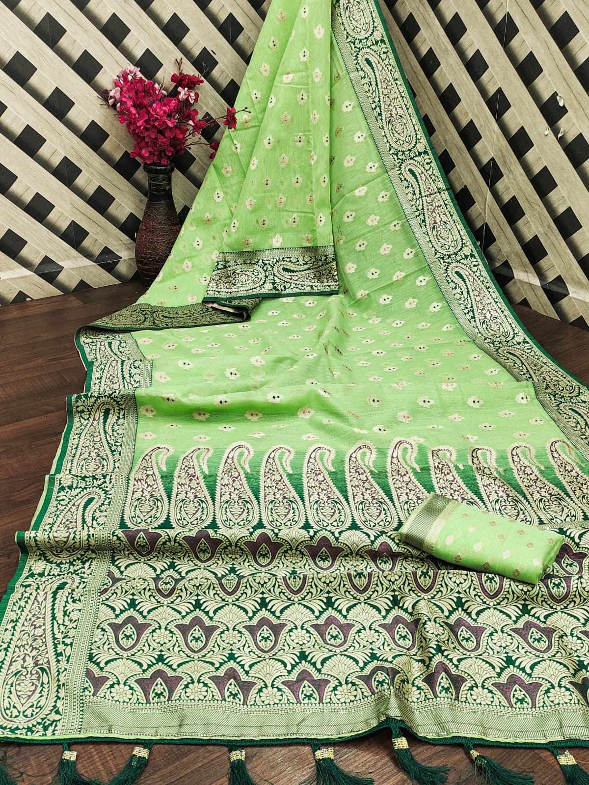 | Name : | MK Green Party Wear Saree With Running Blouse |
